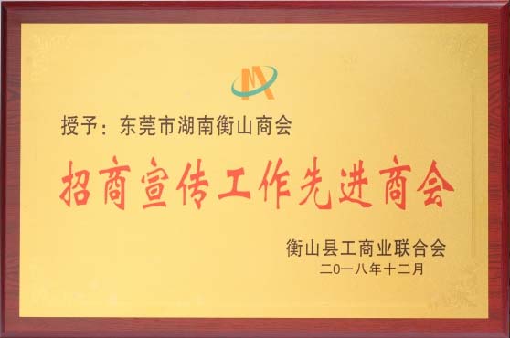 2018.12我会荣获“招商宣传⼯作先进商会”荣誉称号